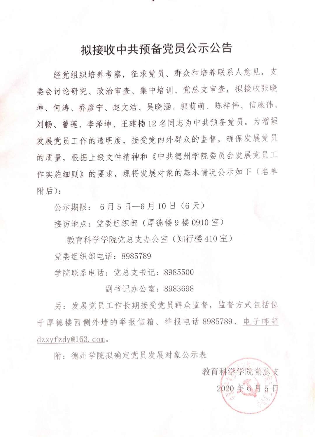 英国365上市公司教育科学学院拟接收中共预备党员公示