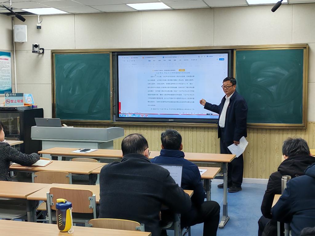 会议伊始,杨爱民、房敏、武云鹏、孙聘四位同志联合开展了党的二十届四中全会精神宣讲,重点解读了全会关于“建设网络强国” 的战略部署,强调教师群体在网络空间治理中的示范责任。随后,全体教师集中学习习近平总书记关于网络强国的重要思想,深刻领会 “网络安全为人民,网络安全靠人民” 的核心要义。