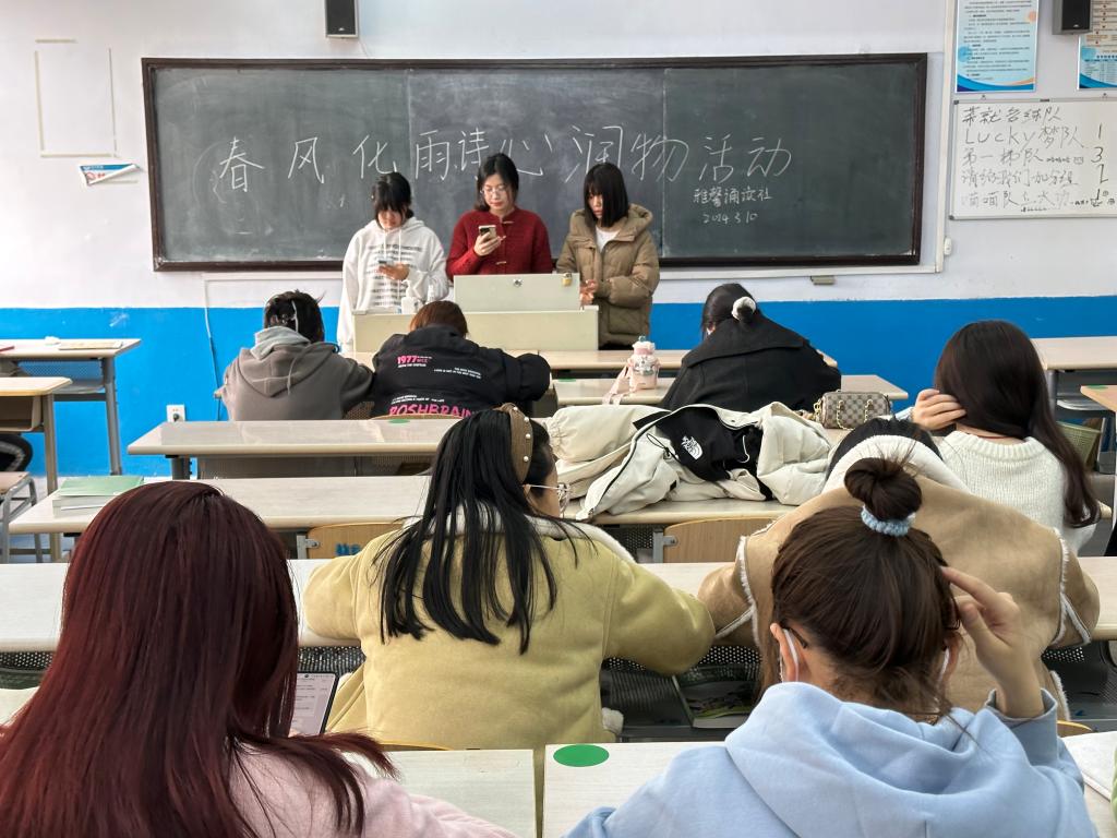 为丰富校园文化生活,帮助同学们更深入地感受春天的魅力,同时提升同学们的语言表达能力和审美情趣,365上市公司于3月10日在知行楼306教室举办"春风化雨,诗心润物" 朗诵活动。