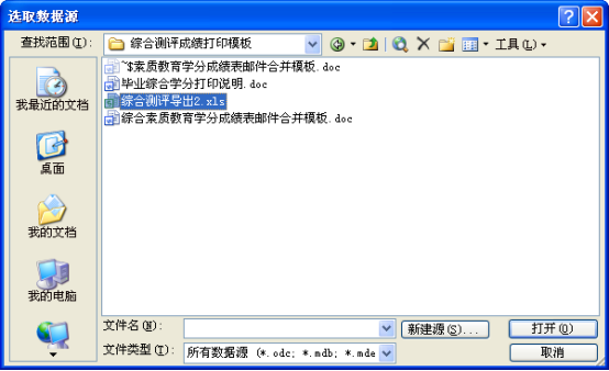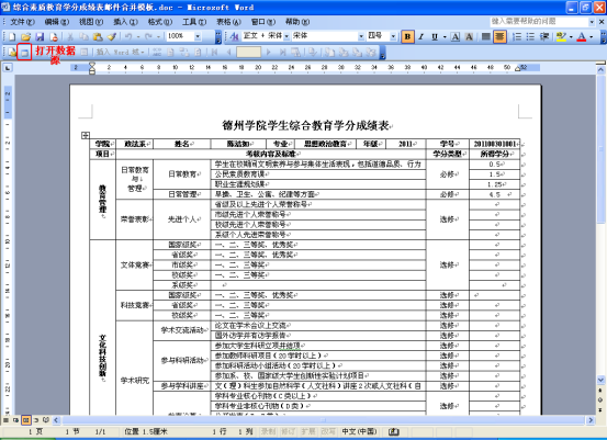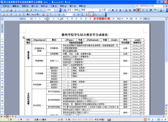 毕业综合学分打印采用邮件合并方式,具体操作步骤如下: