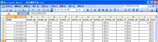 4.打开上面下载的“综合测评导出.xls”,将顶端前6行无用数据删除,修改为如图5所示格式。