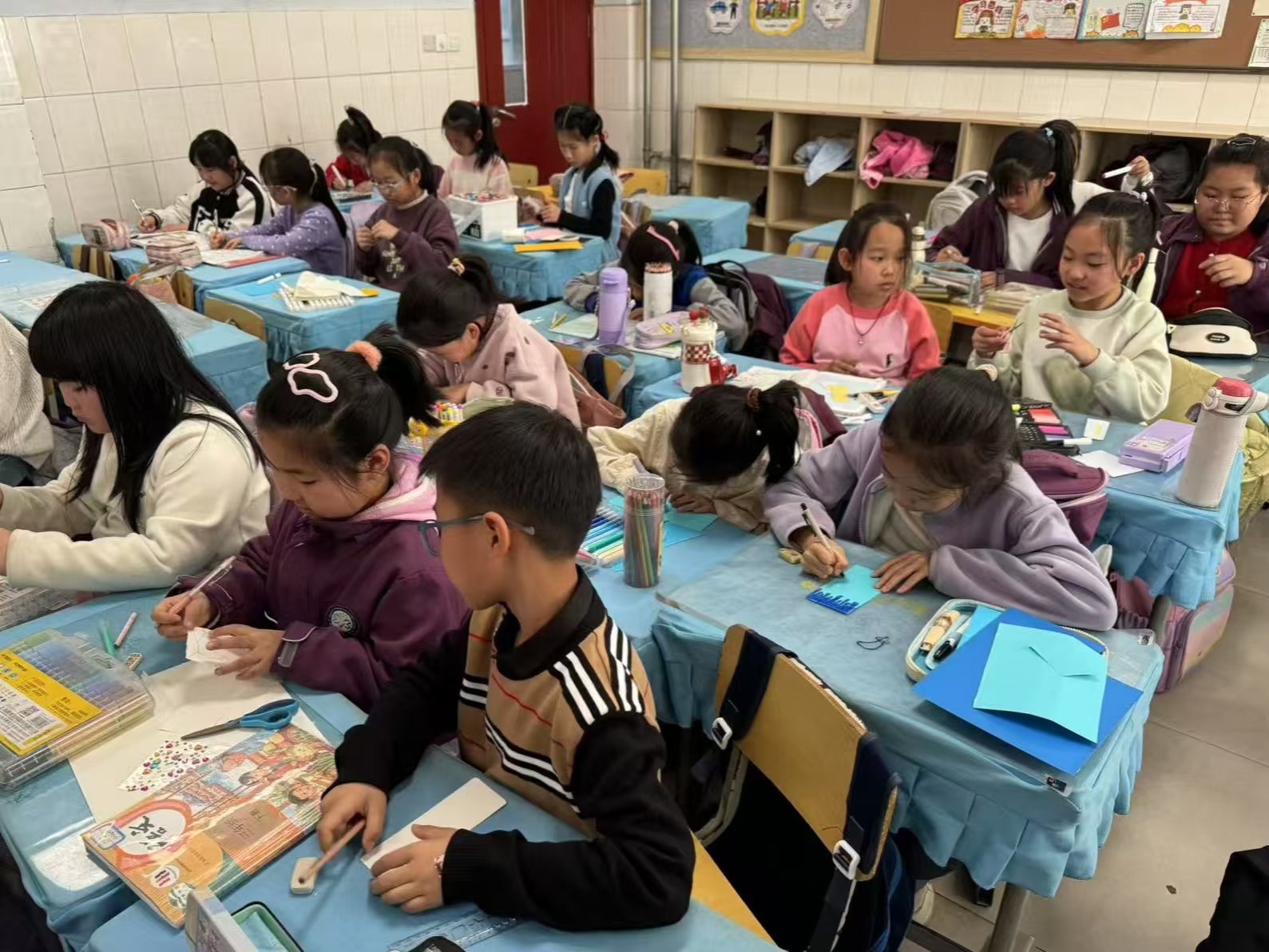活动当天,同学们带着盘纸材料和工具来到了小学校园。他们首先向孩子们介绍了盘纸的历史渊源和使用方法,让孩子们对这项传统手工艺有了初步的了解和认识。随后,在同学们的指导下,孩子们开始动手尝试制作盘纸书签。他们结对合作,共同构思书签的形状和图案。与此同时,音乐社团的同学带领孩子们一句句地学唱着传统歌曲,以歌声表达对美好生活的向往。舞蹈社团的同学们则专注地教孩子们基本舞步,手把手地指导他们跟随音乐的节奏和旋律。孩子们的舞姿虽然稚嫩,但充满活力,每一个动作都充满着对舞蹈的热爱和追求。