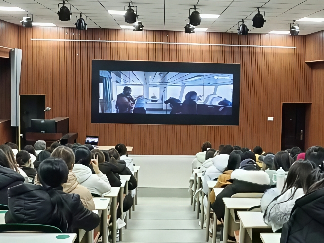活动由《红海行动》观影和分享讨论两部分组成。观影过程中,大家神情专注,沉浸于影片情节之中,被其中展现的团队协作精神与爱国情感深深打动。讨论环节,不少同学分享了自己对影片情节的理解和感受,围绕影片所传递的责任意识、奉献精神与集体力量展开交流。大家表示,通过此次观影,对爱国主义与担当精神有了更真切、更深入的理解。