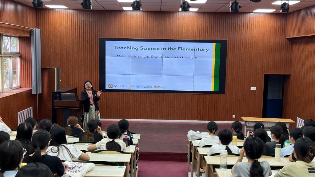 此次讲座邀请到了菲律宾马科斯国立大学讲师黎加·简·耐提弗戴博士,就菲律宾实验小学如何开展科学类教育,小学科学教育的四大分类和一名合格的小学教师应怎样进行科学类教学三大方面展开演讲。讲座上,黎加博士强调,在实施科学教学的过程中,教师要成为关键性、创造性问题的解决者,创新的思考者,知情的决策者和有效的沟通者。教师要适应与融入学生活动,不仅要带领学生们学习化学、生物学、物理学、地球与空间科学四个方面的科学知识,还要带领学生们进行创新性的研究课程,如互联网和校外实践活动。同学们认真听讲,积极互动,讲座在热烈气氛中落下帷幕。