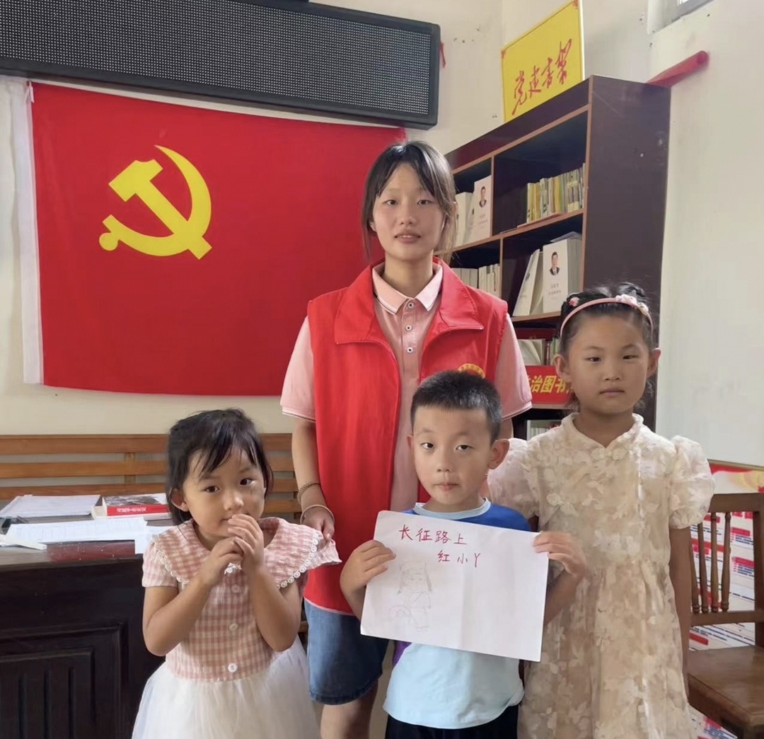 故事、音乐、演讲、绘画...实践队这场支教活动让孩子们收获满满。课内,实践队员通过有趣的教学方式激发孩子的学习热情;课外,关心孩子个人成长和心理健康,助力孩子社交能力养成。从课内延伸到课外,全面推动孩子健康成长。努力弘扬中华优秀传统文化,让童音童语、红色经典浸润乡村。通过讲《长征路上红小丫》的故事,让孩子学习红色精神,学习普通话,指导孩子用普通话读绘本。