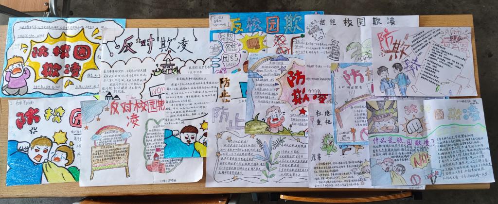 在手抄报制作过程中,同学们用画笔,画出对于欺凌的厌恶,用自己的想象力,推动防欺凌的宣传。同学们不仅提高了动手能力,也有利于加深对于防欺凌的认识。同学们的手抄报内容丰富,有关于对于防欺凌做法的建议,也有对于防欺凌产生不利影响的讲解。在一张张手抄报的背后,体现了同学们对于欺凌的抵制,表达了同学们对于弱势群体的爱护,也体现出同学们对于生命安全的重视。