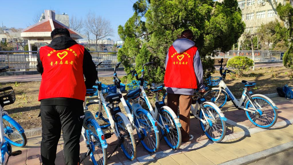 志愿者们找回散落在校园角落的共享单车,搬放至合理停车点,从而规范共享单车的停放,方便同学们的使用。志愿服务结束后,志愿者们共同举办志愿者晚会,播放有关志愿服务的视频,讲解志愿服务活动的精神内涵,带大家深入了解国际志愿者日,真正落实为同学办实事的理念。最后给考研学子送上一份温馨的礼物,一句温暖的祝福语,予以鼓励,祝愿他们一路披荆斩棘,成功上岸。