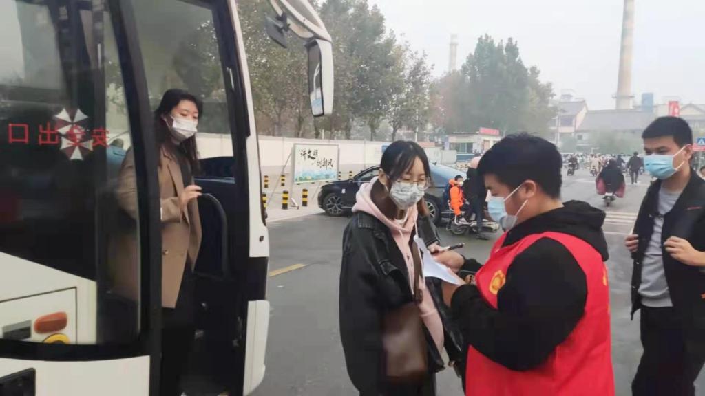 考试当天,组织三辆大巴车,对考点距离较远的同学进行点对点接送,全力做好各项服务保障工作。