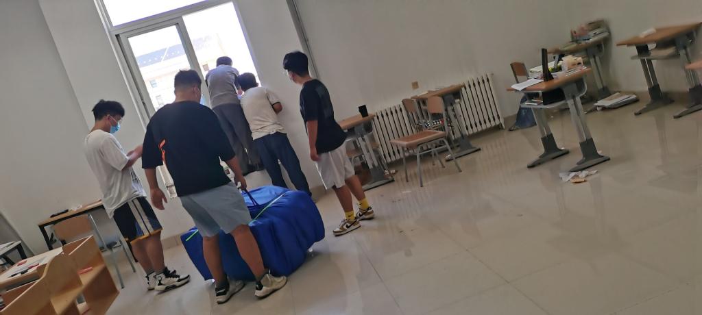 365上市公司迎新工作于2021年8月25日正式拉开帷幕。在新同学正式到来之前,迎新志愿者们也做了充足的迎新准备。为给2021级新同学营造一个舒适、温馨、整洁的住宿环境,辅导员崔弘老师带领迎新志愿者们提前将卧具送入新同学们的宿舍内。