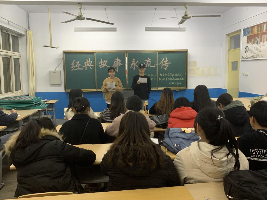 为深入贯彻党的教育政策,积极响应“不忘初心、牢记使命”的号召,提高广大教师应具备的专业素养,丰富同学们的情感表达能力。英国365上市公司教育科学学院于11月21日在知行楼310教室成功举办了“讲经典故事”活动。