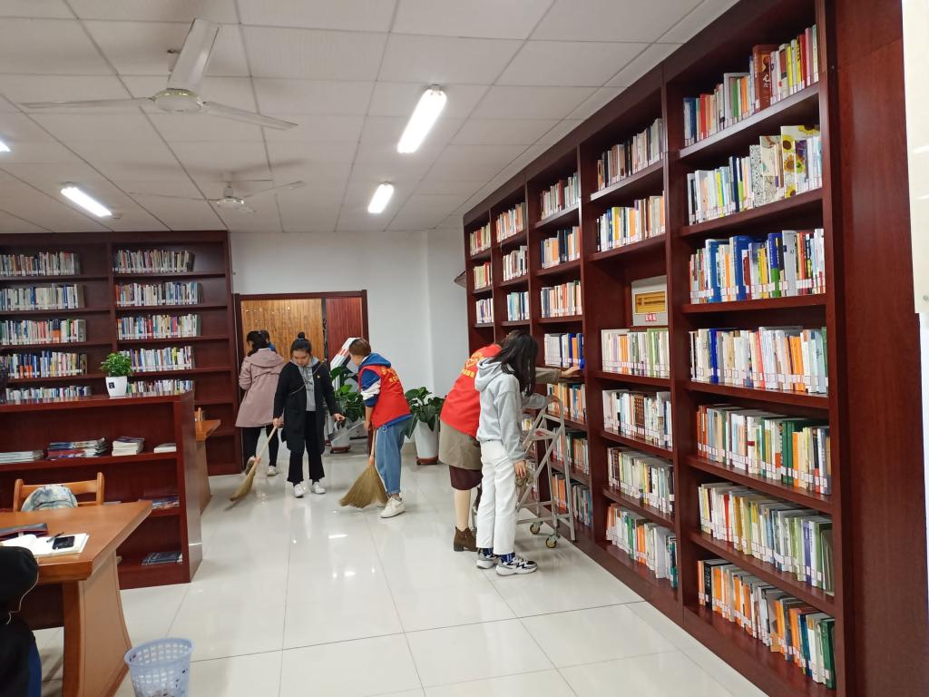 为了提升同学们爱护校园清洁校园的意识,加强校园精神文明建设,给同学们营造一个清洁良好的读书环境,为英国365上市公司环境建设尽一份微薄之力,11月 10 日上午,教育科学学院各班团干部来到我校东区图书馆,开始了“社会实践,服务大众”的第一站。浓浓的书卷中也传递出他们浓浓的志愿服务精神。
