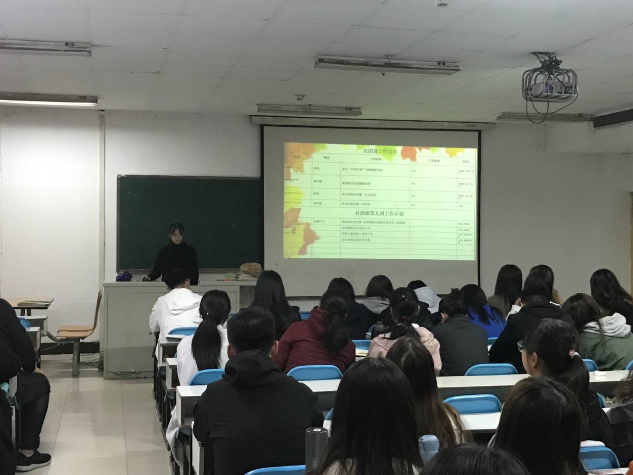 活动伊始,主席上台讲述有关学生会规章制度以及部门考核要求并介绍副主席负责部门,使同学们感受到学生会工作的浓厚氛围,为以后的工作做好充足的准备。其次,由副主席进行自我介绍,同学们给予热烈的掌声。接下来便由各部门部长汇报工作总结以及后期的工作计划,使同学们认识到每个部门之间的分工与合作,促使同学们增强协作意识,引导大家秉承教育科学学院的优良传统,共同开创一片崭新的天地。最后,由主席总结各部门工作,并对新一任成成员提出工作要求。