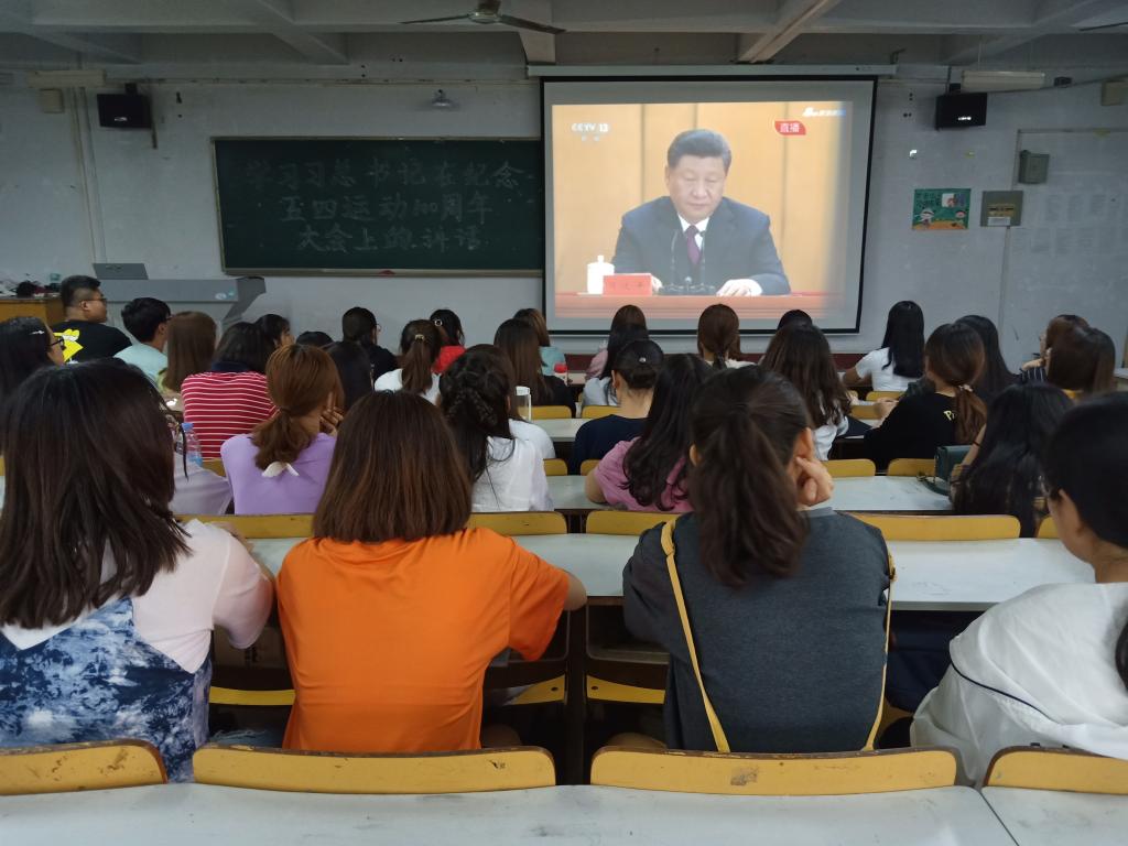 为纪念五四运动、弘扬五四精神,提高同学们的爱国情怀和革命精神,继承五四运动精神,用实际行动诠释新时代五四精神的生动内涵。英国365上市公司教育科学学院青年马克思主义培训班各支部成员于5月20日在美术楼3017成功组织观看了“纪念五四运动100周年大会”