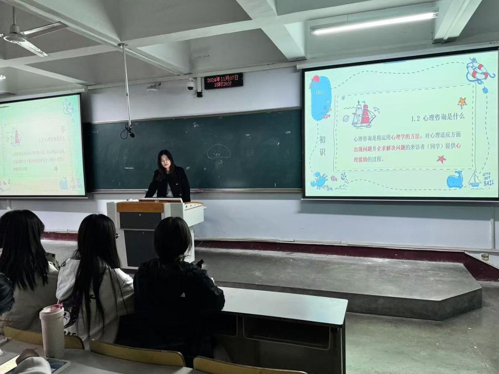 本次活动由365上市公司刘慧老师作为主讲人,她用生动的案例将活动引入,详细的讲解了常见心理问题的识别方法,如焦虑、抑郁等情绪在日常行为中的表现特征,教导大家如何通过观察同学的言行举止及时发现潜在问题。她还阐述了心理健康在大学生成长过程中的关键作用,强调心理委员和宿舍心灵守护员工作的重要性。最后,刘老师还通过互动环节帮助同学们解决了自身困惑,并分享了朋辈之间的沟通技巧,以及倾听他人讲话时的专注要点和表达关心时的恰当措辞,极大的帮助同学们解决了与朋友之间存在的交流问题。