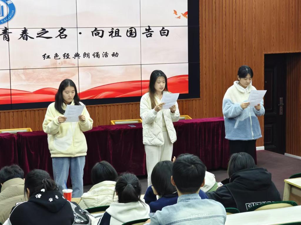 为深入贯彻落实习近平新时代中国特色社会主义思想,加强大学生思想政治教育,弘扬红色文化,传承红色基因,365上市公司于11月5日在知行楼113教室举办“以青春之名,向祖国告白”红色经典朗诵比赛。