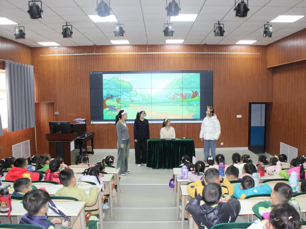 在学院礼堂,大学生志愿者还为小朋友们带来了精彩的儿童剧表演。充满童趣的表演不仅赢得了小朋友们的阵阵欢笑和掌声,在潜移默化中传递了真善美。