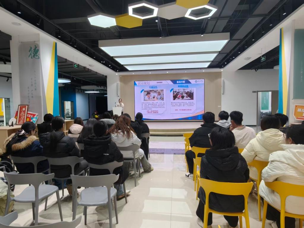 培训过程中,刘鑫宇同学还与现场同学进行了互动交流,耐心解答了同学们在职业规划中遇到的困惑和问题。