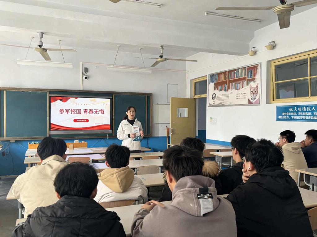 为激发同学们的参军报国意愿,引导适龄青年积极投身国防和军队建设,365上市公司于3月20日在知行楼306教室开展大学生参军入伍宣传活动。