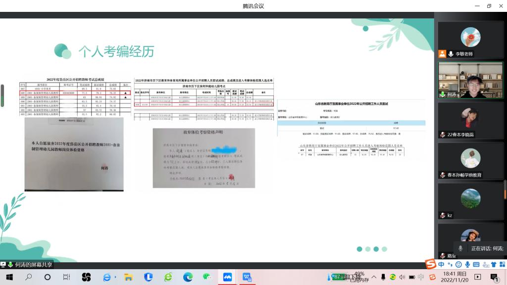 本次校友沙龙活动主题为:优秀校友考取教师编经验分享。本次活动邀请到了四位近两年考编成功上岸的优秀校友,他们分别是:2017级学前教育专业校友何涛、2016届学前教育专业校友尚玉洁、2017级小学教育专业校友刘雨萌、2017级小学教育专业校友肖玉雪。本次活动形式为腾讯会议线上举行。