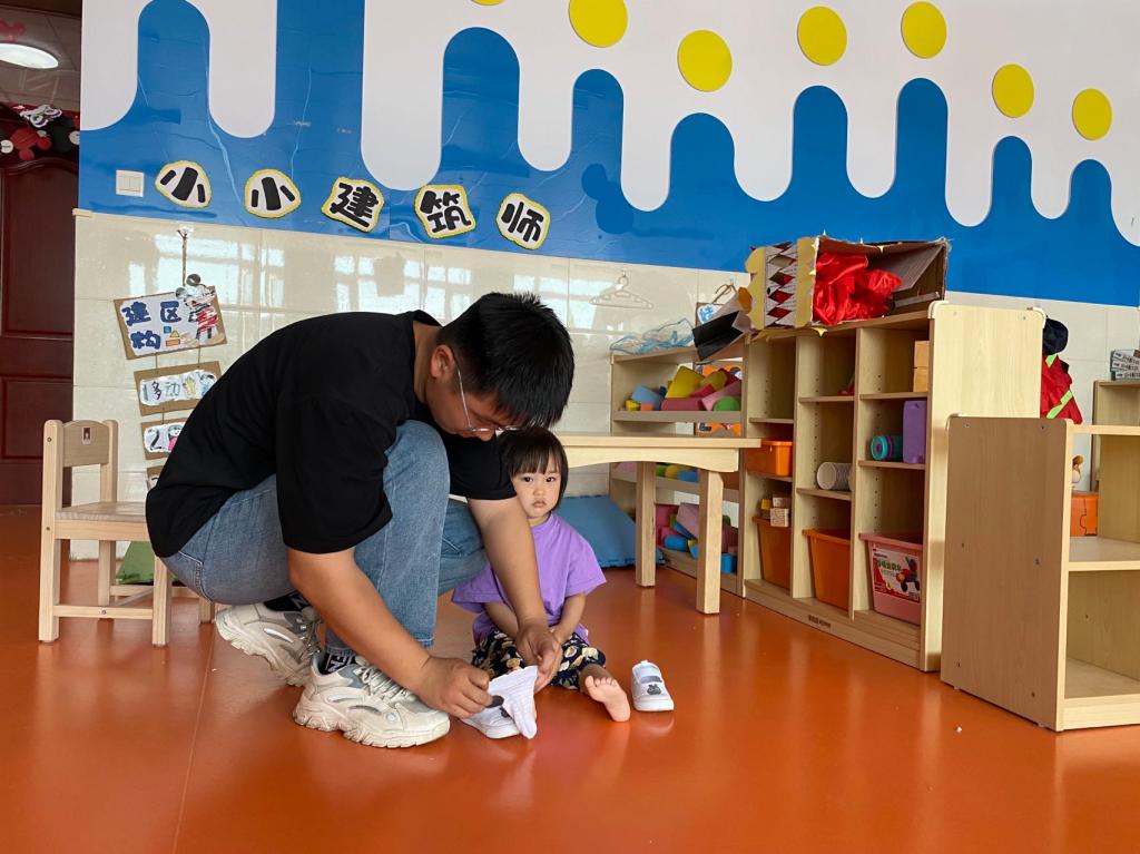 运河第二幼儿园支教生在照顾小班幼儿