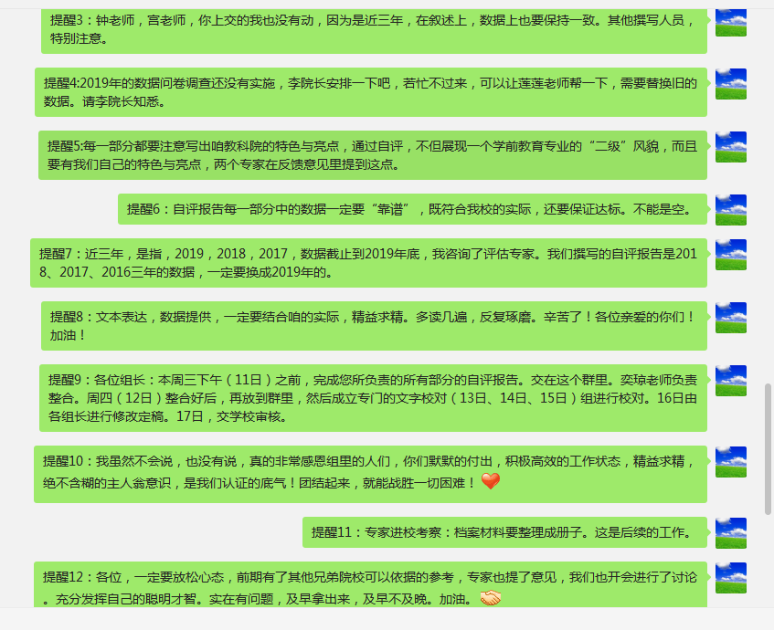 目前,我院学前教育专业师范专业认证工作已进入实操阶段,各项工作正紧锣密鼓有序开展。当下,最紧迫的工作就是完成认证网站的数据上传工作。为此,全院总动员,上下齐努力。明确分工,即各司其职,又通力合作。大家自觉加班加点。学前教育系主任马萌自觉克服各种困难,有时加班到凌晨5点。这种迎难而上的战斗精神对大家是一种鞭策和激励。