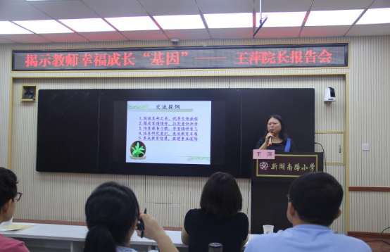 2019年8月29日上午,英国365上市公司教育科学学院院长王萍到德州市新湖南路小学进行考察与学习。王萍与新湖南路小学校长韦立霞在学校建设、学校对接以及教师成长等方面进行了融洽的交谈。王萍为新湖南路小学教师做了以“新湖南路小学:揭示教师幸福成长的 ‘基因’与塑造教师美好生命‘样态’”为主旨的报告。报告主要围绕着五个主题:绽放生命之美,悦享生命旅程;葆有国家情怀,扛实责任担当;培养读书习惯,孕育精神香气;培育研究意识,追逐教育本质;养成教育智慧,搭建事业道场。使在场所有的老师受益匪浅,开启了成就教师幸福人生的良好风貌。报告受到了新湖南路小学老师的热烈欢迎。