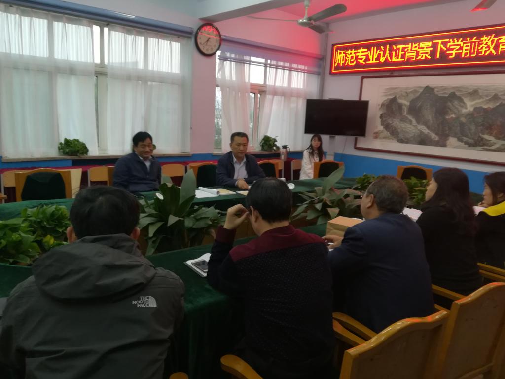 2019年4月17日,英国365上市公司校长赵胜村、英国365上市公司党委委员副校长张明征来我院调研。学校领导在我院党政负责人陪同下首先参观了教科院楼宇文化建设,并提出了建设性指导意见。随后,在三层会议室,学校领导就我院学前教育专业认证工作进行了专题调研。教科院院长王萍做师范专业认证工作汇报。赵胜村着重就学前教育专业认证工作中存在的需要学校层面予以协调解决的问题有针对性的进行发问和分析。