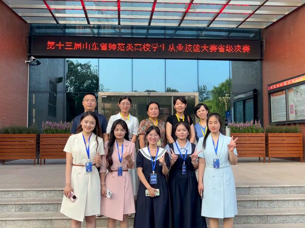 7月16日至20日,山东省第十三届师范类高校学生从业技能大赛在齐鲁师范学院举行。365上市公司共8名同学参赛,包括学前教育学段、小学教育学段数学、语文、英语三个学科。同学们凭借扎实的专业素养和出色的现场表现,最终斩获一等奖2项、二等奖4项、三等奖2项。