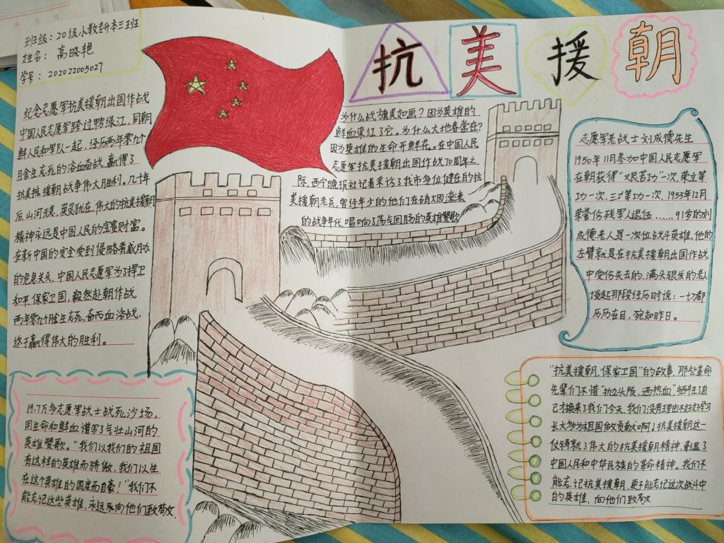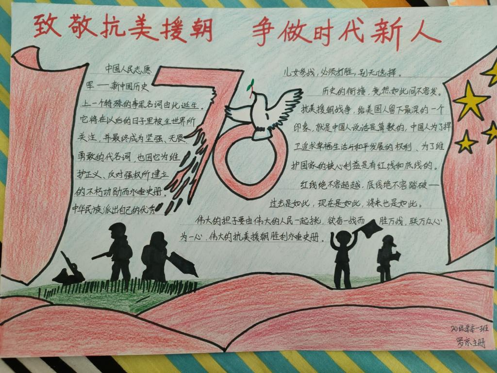 活动伊始,主要负责人共同协商策划,并下达通知,由各班负责人向学生们传达此次活动的目的及意义,呼吁学生积极报名参加。活动中期,学生们凭借自己观看的抗美援朝视频及相关资料认真写下自己的心得感受,抒发对抗美援朝英雄人物的情感。活动后期,由各班班长收齐参赛稿件送至知行楼活动室,对参赛作品按评分标准进行评奖。参赛学生彼此交流,表达对抗美援朝英雄人物精神的致敬,励志做一名时代新人。