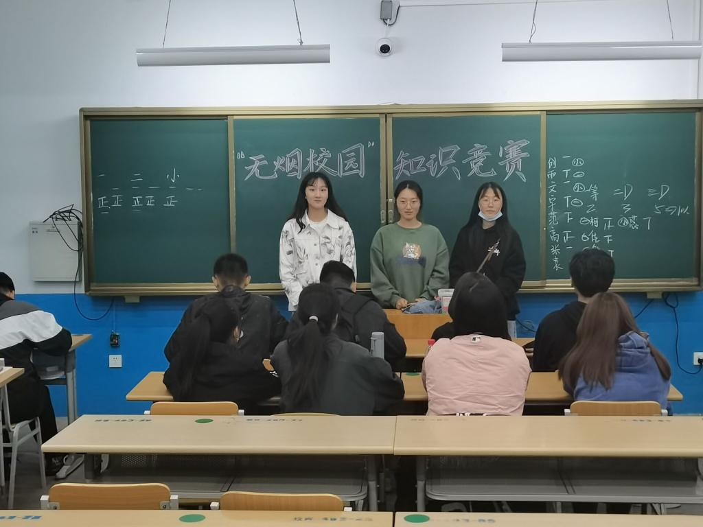 目前,为树立和展现我校师生良好的精神面貌,养成良好文明的生活习惯,创造无烟校园,提高学生生活质量,改善学校形象。我院于2020年10月16日中文楼402举办“无烟校园”知识竞赛活动。